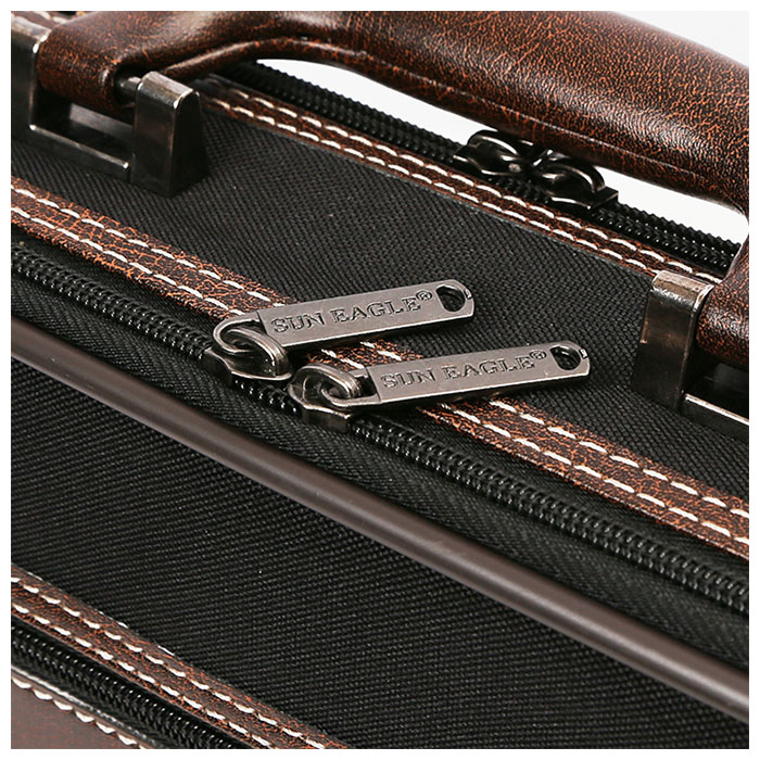 | ・スタイリッシュな横顔がビジネススタイルを素敵に引き立てる。SUN EAGLEから「ビジネスバッグ7466」が新登場。 ・ブラックを基調にした端正なフォルムに、ブラウンのフェイクレザーがアクセントになったアタッシュケースタイプのビジネスバッグ。 ・メインルーム開口部に、スーツケースのようにフラップが広がるラウンドファスナーを採用。バッグ内側が見やすく小物類の出し入れ、パッキングがスムーズ。 ・メインルーム内部には、吊りベルト式書類ポケット×1、オープンポケット×2、メッシュポケット×2、ペン差し×3、スマホ用ポケット×1をバランスよく配置し、ビジネスツールの仕分けに役立つポケットが充実。(※スマホ用ポケットには、機種によって収納できない場合もございます。) ・バックル付き伸縮ベルトで、書類やファイル、ワイシャツ等の衣類もピタッと固定することができ、散らかりがちなバッグの中をすっきりと整理。 ・バッグ背面側には、書類専用の収納ポケットも搭載。吊りベルト式ポケットと、ジャバラ状にマチの広がるポケット2つに分かれた3層構造で、プレゼン資料も折り曲げずにフラットに収納することが可能。 ・付属のショルダーベルトで肩掛けにもできる2WAY仕様。肩に負担を掛けずに持ちやすい、滑り止めパッド付き。 ・底鋲付きでバッグがしっかりと自立するから、訪問先での立ち居振る舞いもよりスマートに。 ・メインルーム、背面側の書類専用ポケット、フロントファスナーポケットすべてがA4ファイルサイズに対応。デザイン、機能性ともにビジネスに特化したつくりで、デキるビジネスマンの強い味方! |
