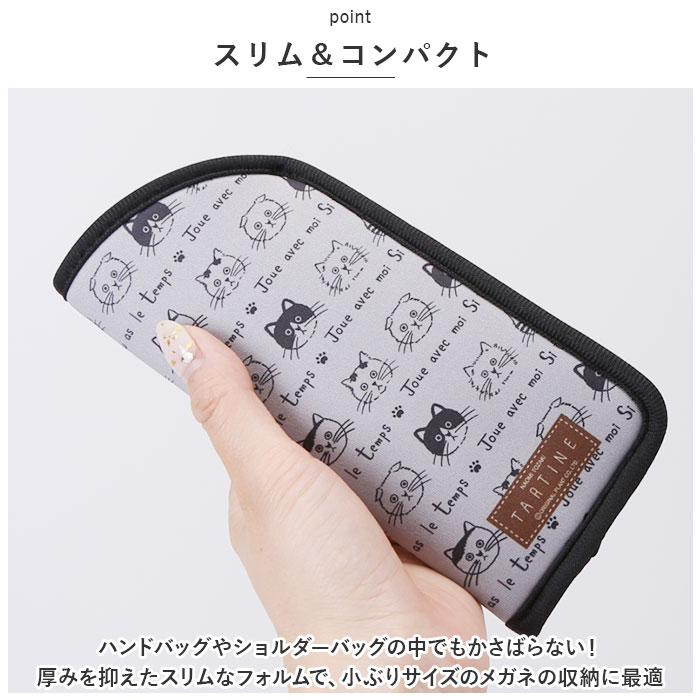 | ・くりくりお目々でジッと見つめてくるネコちゃんにほっこり♪軽くてお洒落に持ち歩ける「Tartine -タルティーヌ- メガネ/ペンケース」が新登場。 【Tartine オリジナルデザイン】 ・「タルティーヌ」は、人気作家の戸崎尚美さんが描いたネコのシャロンをフィーチャーした雑貨シリーズ。 【ソフトな生地でメガネを保護】 ・ケースの生地はウェットスーツにも使用される「ネオプレーンゴム」素材。そのソフトなクッション性でメガネをキズや衝撃から優しく保護。 【スリム&コンパクト】 ・ハンドバッグやショルダーバッグの中でもかさばらない!厚みを抑えたスリムなフォルムで、小ぶりサイズのメガネの収納に最適。 【片手でサッと取り出し】 ・ファスナーやフラップのないシンプルな構造で、リーディンググラスを掛けたいときに片手でサッと取り出せるのが嬉しいポイント。 【使い方いろいろ】 ・メガネケースとしてだけでなく、ミニ化粧水ボトルを入れてコスメポーチ、筆記用具をちょこんと挿してペンポーチなど、使い方はアイディア次第で無限大。 【センスが際立つ大人カラー】 ・お澄まし顔であどけないネコちゃんの表情と、落ち着いた大人シックなカラーリングで、メガネを取り出すたびに注目の的に♪ |