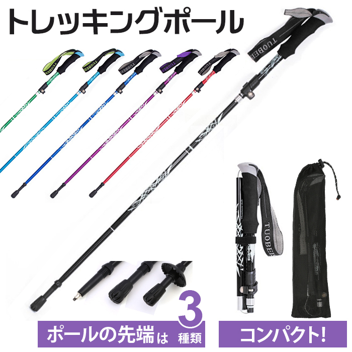 | ・トレッキングやハイキングの必須アイテム♪折り畳み式のトレッキングポールが登場。 ・持ち手は触り心地が良く手にフィットする。ストラップ付きなので安心して使える。 ・畳んだ状態からポールをはめて金属製押しボタンが出てくるまで引っ張って使用。 ・さらにレバーロックを外してツマミを回すと長さ調節ができる(20cm伸縮可能) ・畳む時は真ん中の金属製押しボタンのロックを解除してポールを引っ張って面ファスナーで留めて収納ができる。 ・ポールの先端は3種類!トレッキングキャップをした状態はポール先端を保護し、ウォーキングやハイキングに最適。キャップを外すと石突きの機能を発揮し、岩場をクリップする。バスケットキャップとトレッキングキャップを使用する事で、地面の刺さりすぎを防止し、岩場やぬかるみ時に最適。用途によって使い分けができて便利。 ・付属の収納袋があるので、コンパクトに畳んでリュックにしまうことができるのがうれしいポイント♪ |