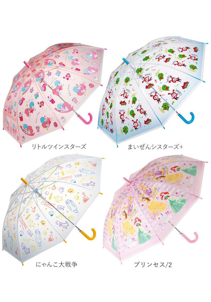 | ・クリア素材にプリントされた大人気キャラクターがとってもかわいい!子ども用ビニール長傘(親骨55cm)が新登場。 ・傘骨は軽くて丈夫で折れにくいグラスファイバーを使用。 ・開閉部は指を挟みにくい安全カバー付きだから、お子さまのご使用でも安心。 ・ワンタッチで開くジャンプ式。荷物の多い雨の日だってラクラク開閉できるのが嬉しい! ・バンドはお名前が書けるタグ付き。 ・ポップでかわいいプリントは、雨の日だって楽しい気分に♪ |