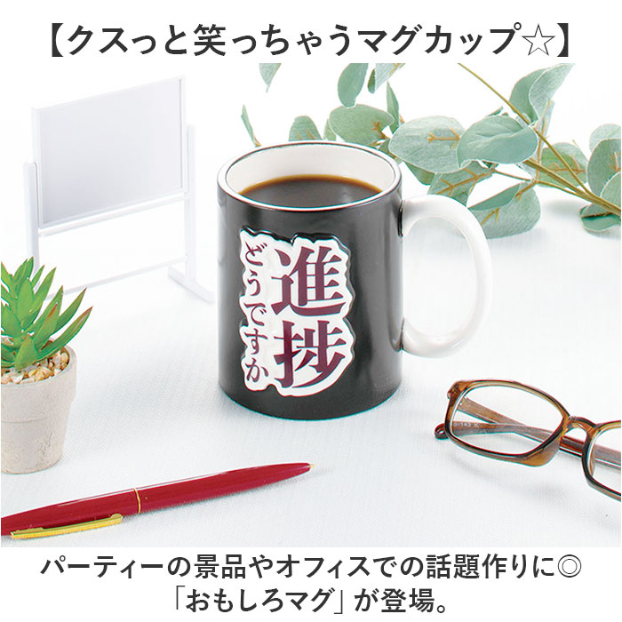 | 【クスっと笑っちゃうマグカップ☆】 ・パーティーの景品やオフィスでの話題作りに◎「おもしろマグ」が登場。 【選べる豊富なおもしろさ!】 ・パッと目を惹く、インパクトのあるデザインが魅力。自分にぴったりの1つをチョイス☆ 【思わず笑っちゃうメッセージ性】 ・見た目はもちろん、ちょっと自虐ネタっぽいメッセージ性がおもしろい!話題性バツグン! 【いろんなシーンで大活躍!】 ・持っているだけで、楽しい空間に早変わり!お家で家族と、会社で同僚と、宅飲みでお友達と♪ 【ギフトや景品にぴったり☆】 ・パーティーの景品や、ジョーク混じりの贈り物に♪笑顔になってほしい方へのギフトに◎ |