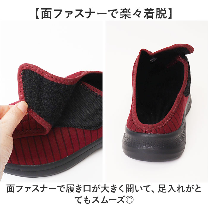 | 【履きやすさ抜群の介護靴】 ・脱ぎ履きが簡単、軽くて歩きやすいレディース介護シューズ。 【面ファスナーで楽々着脱】 ・面ファスナーで履き口が大きく開いて、足入れがとてもスムーズ◎ 【通気性抜群で快適仕様】 ・通気性に優れた生地だから、長時間履いても蒸れ知らず♪ 【軽量設計で疲れ知らず】 ・足への負担を軽減する軽さで、長く歩いても快適な履き心地。 【滑りにくい靴底が安心】 ・凸凹加工のソールがしっかり地面を捉えて安定感抜群! 【取り外せて清潔キープ】 ・中敷きは外せて、いつでも衛生的に使える仕様〇 |