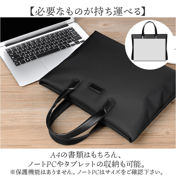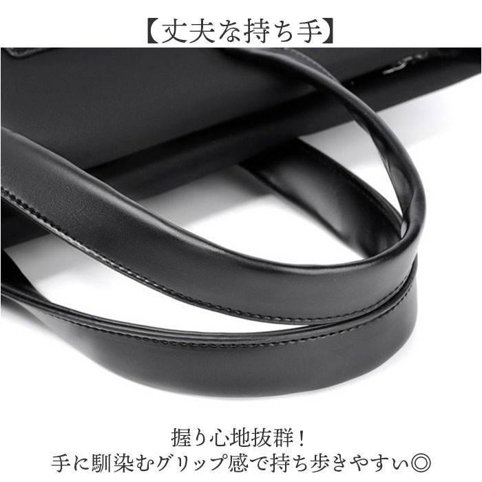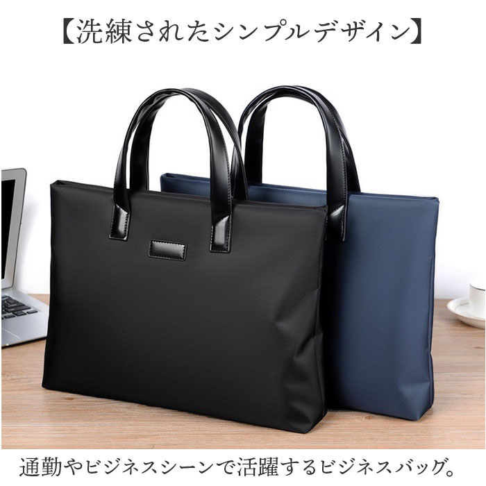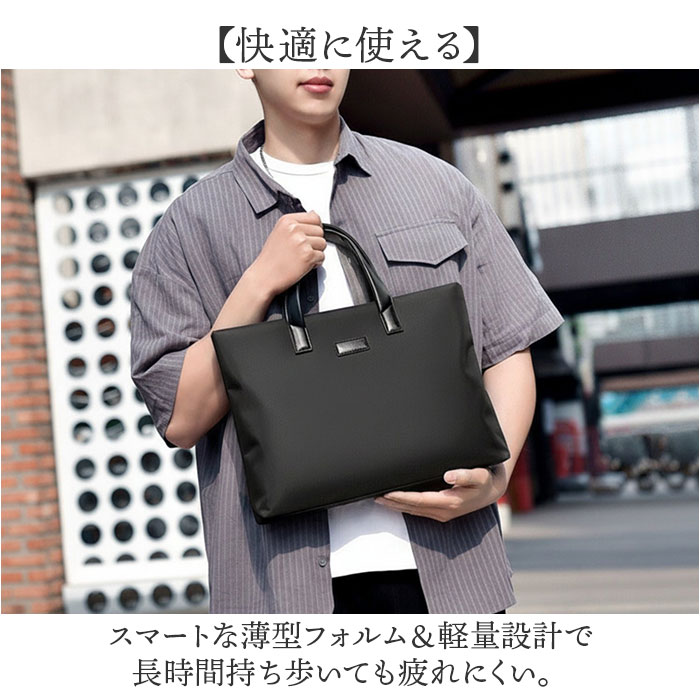 | 【洗練されたシンプルデザイン】 ・通勤やビジネスシーンで活躍するビジネスバッグ。 【すっきり収納】 ・仕切りと豊富なポケットで荷物を整理しやすい。 【必要なものが持ち運べる】 ・A4の書類はもちろん、ノートPCやタブレットの収納も可能。※保護機能はありません。ノートPCはサイズをご確認下さい。 【雨の日も安心】 ・撥水加工が施された生地を使用。天候を気にせず使える頼もしさ。※完全防水ではございません。 【丈夫な持ち手】 ・握り心地抜群!手に馴染むグリップ感で持ち歩きやすい◎ 【快適に使える】 ・スマートな薄型フォルム&軽量設計で長時間持ち歩いても疲れにくい。 |