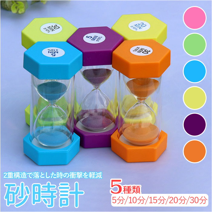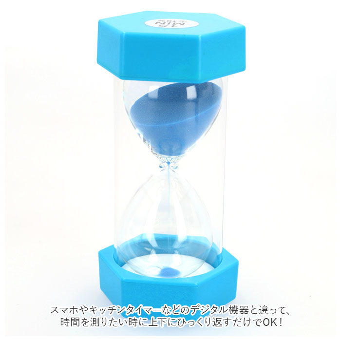 | ・手軽に時間を測れる!六角タイプのカラフルな砂時計が登場。 ・スマホやキッチンタイマーなどのデジタル機器と違って、時間を測りたい時に上下にひっくり返すだけでOK! ・何も設定がいらないアナログ構造だからこそ、いざというときに便利◎ ・5分、10分、15分、20分、30分のラインナップ。 ・本体は水濡れしても拭き取るだけでOK。 ・透明カバー付きの2重構造で、落としたときの衝撃を軽減。お子さまが触れた時も安心。(※内側にガラス素材を使っており、万が一破損してしまった際に危険なため、月齢の低いお子さまには触れさせないようご注意ください。) ・ぼーっと眺めているだけで、ゆったりとした時間を感じさせてくれる砂時計。 ・お子さまの知育にもおすすめ。 |