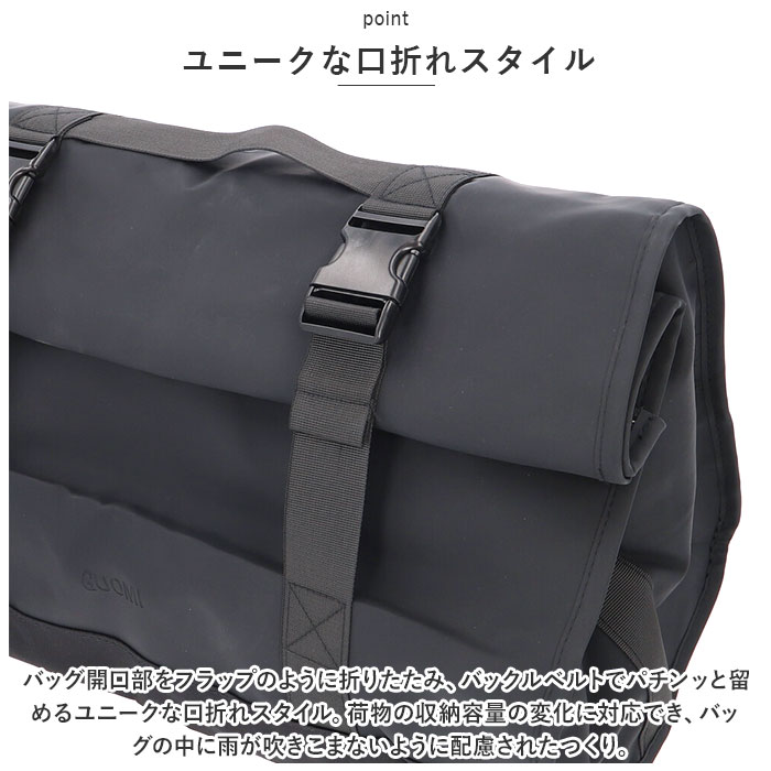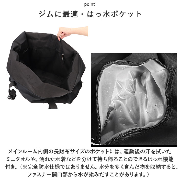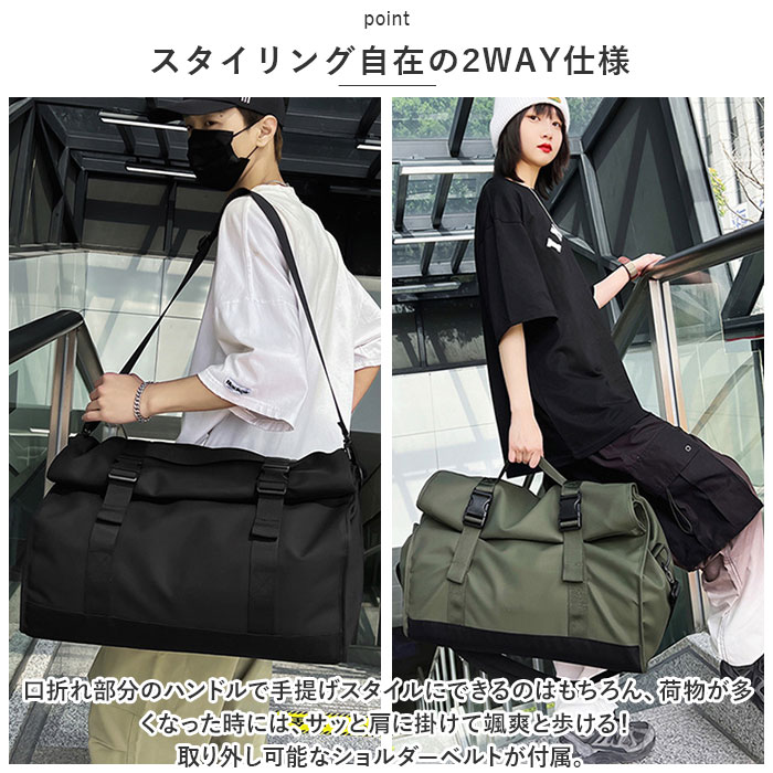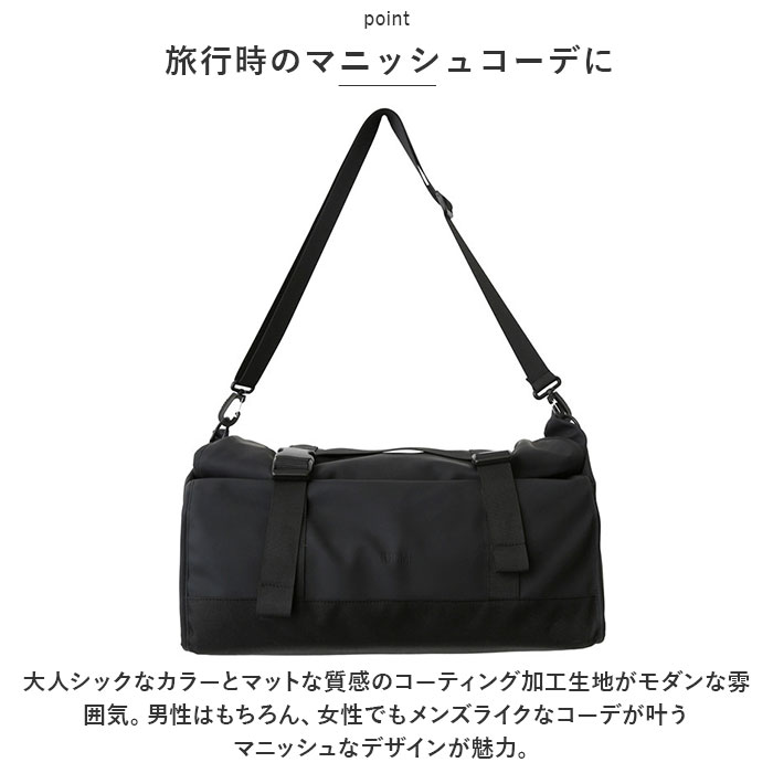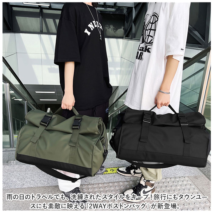 | ・雨の日のトラベルでも、洗練されたスタイルをキープ!旅行にもタウンユースにも素敵に映える「2WAYボストンバッグ」が新登場。 【雨に強い全天候型ボストン】 ・丈夫なオックスフォード生地に水滴や汚れに強いはっ水コーティング加工を施した、突然の雨やアウトドアでもアクティブに使えるボストンバッグ。(※完全防水仕様ではありません。非常に強い雨の場合など、縫い目から水が侵入する場合があります。) 【ユニークな口折れスタイル】 ・バッグ開口部をフラップのように折りたたみ、バックルベルトでパチンッと留めるユニークな口折れスタイル。荷物の収納容量の変化に対応でき、バッグの中に雨が吹きこまないように配慮されたつくり。 【大容量でもスタイリッシュ】 ・メインルームはA3サイズに対応した大容量設計。たっぷりのマチ幅で、2泊3日程度の衣類やトラベルグッズもしっかりと収納できるサイズ感。 【ジムに最適・はっ水ポケット】 ・メインルーム内側の長財布サイズのポケットには、運動後の汗を拭いたミニタオルや、濡れた水着などを分けて持ち帰ることのできるはっ水機能付き。(※完全防水仕様ではありません。水分を多く含んだ物を収納すると、ファスナー開口部から水が染みだすことがあります。) 【止水ファスナーポケット】 ・バッグのフロントには、雨が染みこみにくい止水ファスナーポケットを装備。スマホや二つ折り財布など、大切なアイテムの保管に便利。 【スタイリング自在の2WAY仕様】 ・口折れ部分のハンドルで手提げスタイルにできるのはもちろん、荷物が多くなった時には、サッと肩に掛けて颯爽と歩ける!取り外し可能なショルダーベルトが付属。 【多彩なシーンでお洒落に】 ・旅行用ボストンとしてだけでなくフィットネスジム用、荷物が多めになりがちな子育て中の方のママさんバッグなど、様々なシーンで大活躍。 【旅行時のマニッシュコーデに】 ・大人シックなカラーとマットな質感のコーティング加工生地がモダンな雰囲気。男性はもちろん、女性でもメンズライクなコーデが叶うマニッシュなデザインが魅力。 |