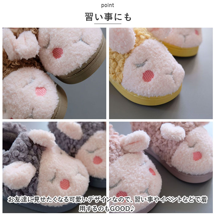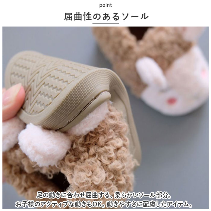 | ・靴タイプで脱げにくい☆足元をあったか可愛く彩る「キッズルームシューズ」が登場。 【もこもこあっあか】 ・内側は起毛素材、外側はもこもこ素材であったかい。ダブルのぬくぬく仕様で、寒い季節のお子様の足を指先まで暖めてくれるルームシューズ。 【キュートなデザイン】 ・ぴょこんとお耳がとってもキュートな羊さんをイメージしたデザイン。お子様のお気に入りを見つけて、ほっこりにっこりお家タイム♪ 【脱げにくい】 ・かかとがある靴タイプで、スリッパよりも脱げにくい。お子様も歩きやすく転びにくいのも嬉しいポイント。 【柔らかインソール】 ・インソール部分はクッション性が高く、履き心地ふっくら。疲れにくい仕様。動履き心地がいいからお子さまが自分から履きたがる♪ 【滑りにくい靴底】 ・靴底は滑り止め加工済みなので、フローリングや階段などの歩行も安心◎ 【屈曲性のあるソール】 ・足の動きに合わせ屈曲する、柔らかいソール部分。お子様のアクティブな動きもOK。動きやすさに配慮したアイテム。 【習い事にも】 ・お友達に見せたくなる可愛いデザインなので、習い事やイベントなどで着用するのもGOOD♪ |