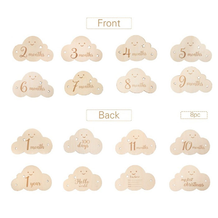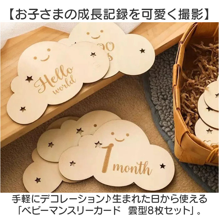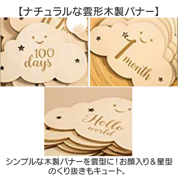 | ベビーマンスリーカード 木製レターバナー 雲形 8枚セット |