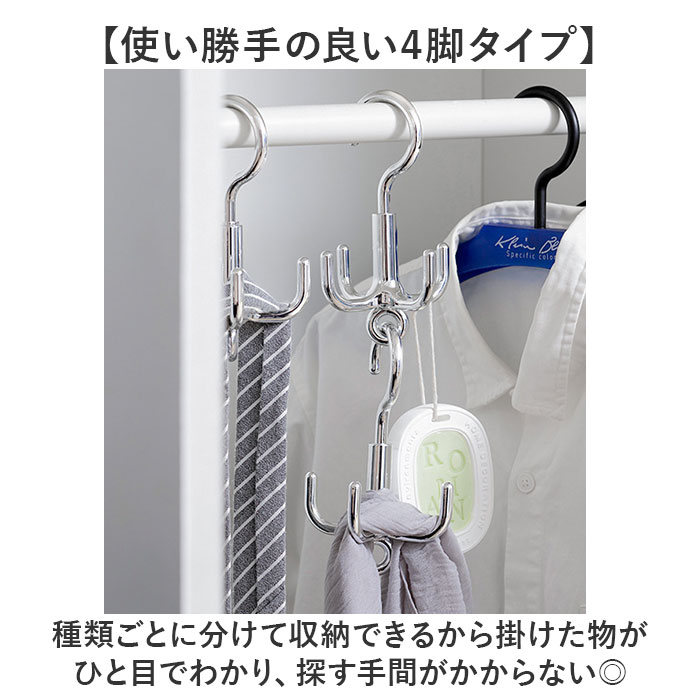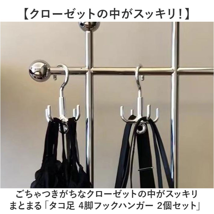 | 【クローゼットの中がスッキリ!】 ・ごちゃつきがちなクローゼットの中がスッキリまとまる「タコ足 4脚フックハンガー 2個セット」 【いろいろな小物を収納】 ・バッグや帽子、ネクタイ、マフラー、ベルトなどいろいろな小物を引っかけて簡単に収納! 【使い勝手の良い4脚タイプ】 ・種類ごとに分けて収納できるから掛けた物がひと目でわかり、探す手間がかからない◎ 【スタッキングもOK!】 ・底部のリングに引っかけて繋げばスタッキングでき、狭い場所でもスペースを有効活用。 【様々な場所で使える!】 ・フックは軽量で360度回転式。洗面所やリビングなど様々な場所で使え、掛け外しもスムーズ。 【生地を傷めないシンプル形状】 ・吊り下げて使用するからシワがつきにくく、キレイに保管できるのも嬉しい♪便利な2個セット。 |
