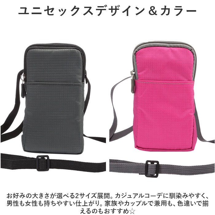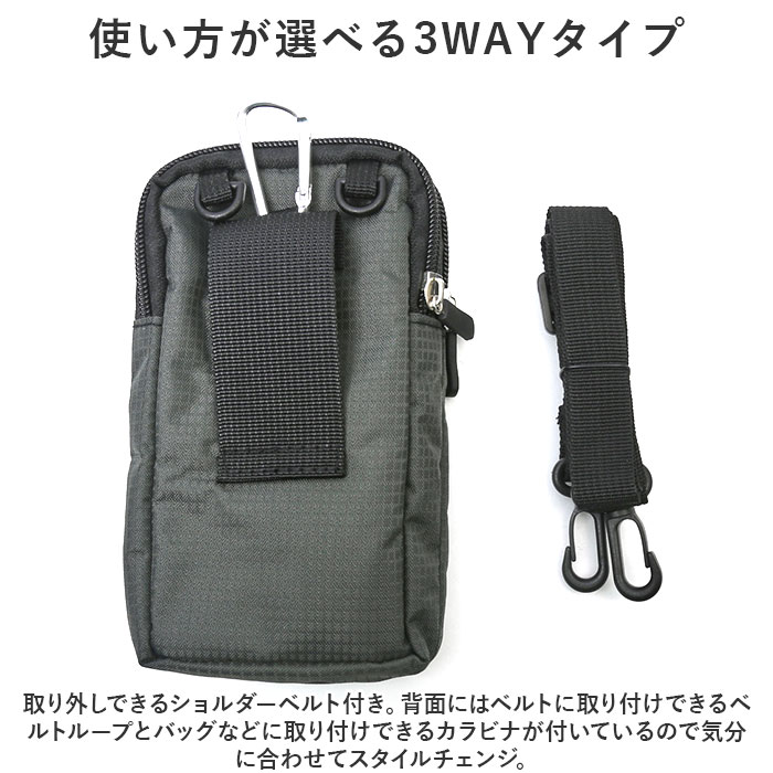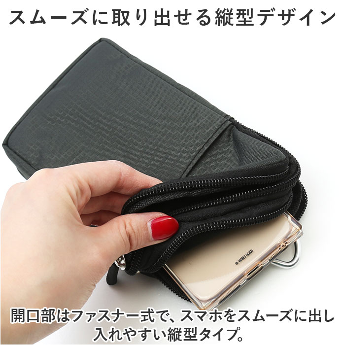 | ・シンプルで使い勝手抜群なポーチが発売。 【スムーズに取り出せる縦型デザイン】 ・開口部はファスナー式で、スマホをスムーズに出し入れやすい縦型タイプ。 【仕分け収納できる2ルーム構造】 ・スマホやお財布など仕分けて入れられる便利な2ルーム構造。 【クッション性のある内生地】 ・内側はクッション性のある柔らかな生地を使用し、大事な機器を優しく保護。 【便利なポケット】 ・フロントにはオープンポケット×1付きでサッと取り出したい物を入れるのに便利。 【使い方が選べる3WAYタイプ】 ・取り外しできるショルダーベルト付き。背面にはベルトに取り付けできるベルトループとバッグなどに取り付けできるカラビナが付いているので気分に合わせてスタイルチェンジ。 【ユニセックスデザイン&カラー】 ・お好みの大きさが選べる2サイズ展開。カジュアルコーデに馴染みやすく、男性も女性も持ちやすい仕上がり。家族やカップルで兼用も、色違いで揃えるのもおすすめ☆ |