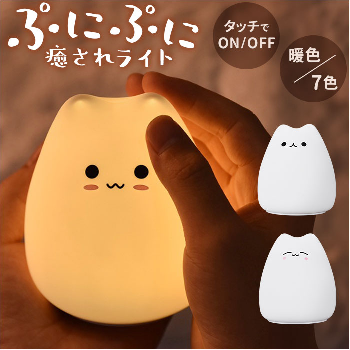 | 【手触りぷにっと♪癒されるライト】 ・寝室、子供部屋、夜間授乳、アウトドアに◎「ぷにぷにナイトライト テーブルランプ」が登場。 【ほわんと優しい光が心地よい♪】 ・暖色ライトが優しくお部屋を照らす、ちょうどいい明るさ。ホッとする空間を作るアイテム。 【触りたくなる、ぷにぷに感触】 ・なでなでしたくなるソフトな手触りで、お子様が触っても安心。丸みのある癒しフォルム。 【昼も夜も♪置くだけでかわいい】 ・ライトとしてはもちろん、インテリアとしてもかわいく使える。いろんなお部屋にマッチ。 【トンっとタッチでON/OFF】 ・本体に軽くタッチするだけの、イージーさがポイント!お子様も自分で簡単操作◎ ・※本体底に、主電源ボタンがあります。 【選べるライト、2パターン】 ・ほっこり優しい暖色ライトと、ゆっくり7色に変化する2パターンをご用意。気分でチェンジ☆ 【コードレス!持ち運びに便利】 ・乾電池タイプなので、場所を選ばずに使える!キャンプなどのアウトドアにも最適。 ・※単四電池×3を使用。 【お好みの表情をチョイス!】 ・にっこり、きょとんなど、表情豊かなデザインがGOOD。どの子がお気に入り☆? 【こんなシーンにオススメ☆】 ・まぶしすぎない光は、お子様の寝かしつけ、夜間授乳、リラックスタイムなどにぴったり♪ |