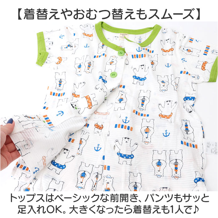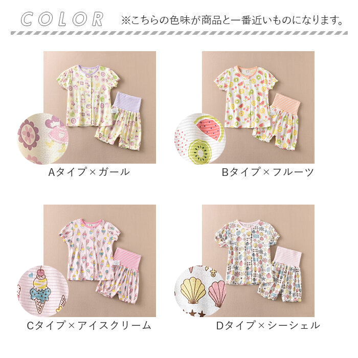| 【暑い夏のお家時間もノンストレス】 ・着心地バツグン。快適に過ごせる「キッズパジャマ」が新登場。 【締めつけ感のないセットアップ】 ・半袖トップス&心地よくフィットするショートパンツのセット。ストレスフリーな着用感。 【デリケートな肌に触れても安心】 ・柔らかくサラッとしたコットン素材。チクチクせず、汗をかいてもムレにくい◎ 【着替えやおむつ替えもスムーズ】 ・トップスはベーシックな前開き、パンツもサッと足入れOK。大きくなったら着替えも1人で♪ 【お腹の冷えをガードできる腹巻き】 ・80〜100cmサイズのパンツには、ストレッチ性のある腹巻き付き。寝冷え対策に最適。 【ポップで可愛いラインナップ】 ・男の子も女の子も着こなしやすいカラー&可愛らしい絵柄。洗い替え用に何枚あっても嬉しい! |