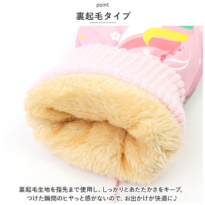 | ・紐つきグローブで紛失防止!こだわりのあったか構造で安心の、スノーグローブ ミトンが登場。 【裏起毛タイプ】 ・裏起毛生地を指先まで使用し、しっかりとあたたかさをキープ。つけた瞬間のヒヤっと感がないので、お出かけが快適に♪ 【あったか構造】 ・ハンド部分はしっかり厚手のボリューム感。手首のリブ素材+キュッと閉められる面ファスナーつきのベルトで、冷気をブロックしてくれる、こだわりのあったか構造! 【滑り止め】 ・手のひら部分に滑り止め加工をON。お子様の安全性に配慮した作りなのも嬉しいポイント。 【ミトンタイプ】 ・見た目にも可愛い、ミトンタイプ。5本指がうまくつけられないお子様もサッと装着できる!着脱がしやすい◎ 【紐つき】 ・両手をセットにして持ち運びができる紐つき。使わない時は首にぶら下げておけるので、片手だけ紛失…を防いでくれる。 【いろいろなシーンで】 ・ウインタースポーツはもちろん、登園通学、公園遊びなど、いろいろなシーンで活躍する。 【選べるデザイン】 ・男の子も女の子もお気に入りが見つかる、選べるキュートなデザイン☆ギフトにもオススメ! ・※5本指タイプを他ページにて販売中☆ |