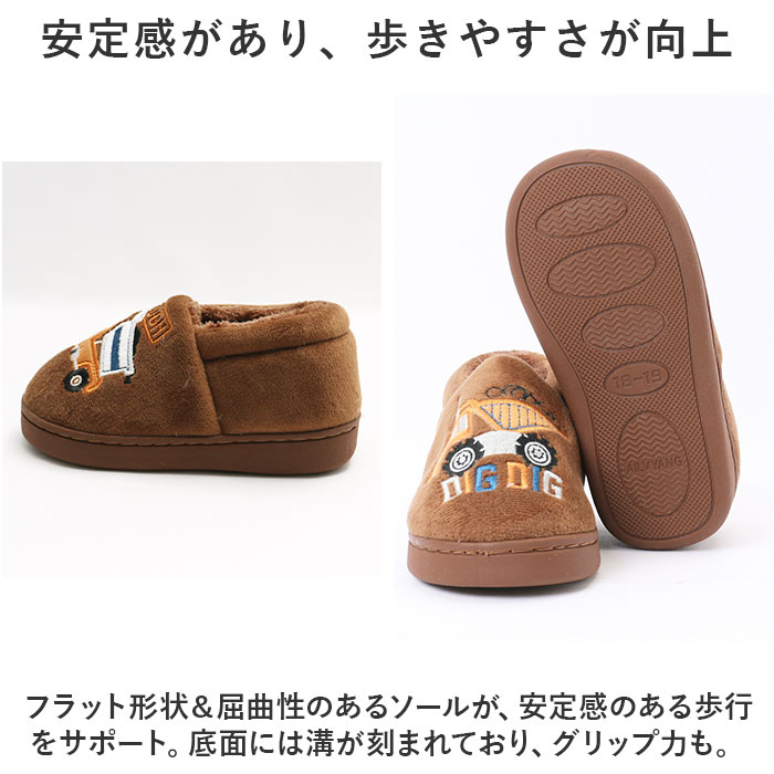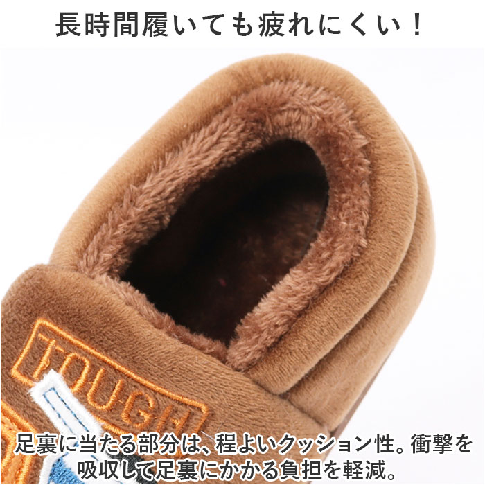 | ・ふんわりあたたかく、秋冬にぴったり。お家でも可愛く防寒できる、キッズ用ルームシューズが登場。 【冷える足元もポカポカ】 ・表面はしっとり、内側はふんわり起毛素材。寒い季節、冷える足元を優しく包み込んでくれるルームシューズ。 【安心安全なシューズタイプ】 ・ころんと丸みのあるカタチ。つま先からかかとまでしっかり覆ってくれるから、障害物などから優しくガード。 【スポッと脱ぎ履きがラクラク】 ・留め具などがなく、お子さま1人でも足入れがスムーズ。 【長時間履いても疲れにくい!】 ・足裏に当たる部分は、程よいクッション性。衝撃を吸収して足裏にかかる負担を軽減。 【安定感があり、歩きやすさが向上】 ・フラット形状&屈曲性のあるソールが、安定感のある歩行をサポート。底面には溝が刻まれており、グリップ力も。 【遊び心のあるキュートなデザイン】 ・男の子も女の子も選べる!個性の光るデザインをラインナップ。兄弟・姉妹お揃いにできる6サイズ展開。 |