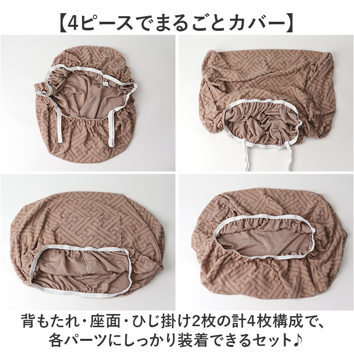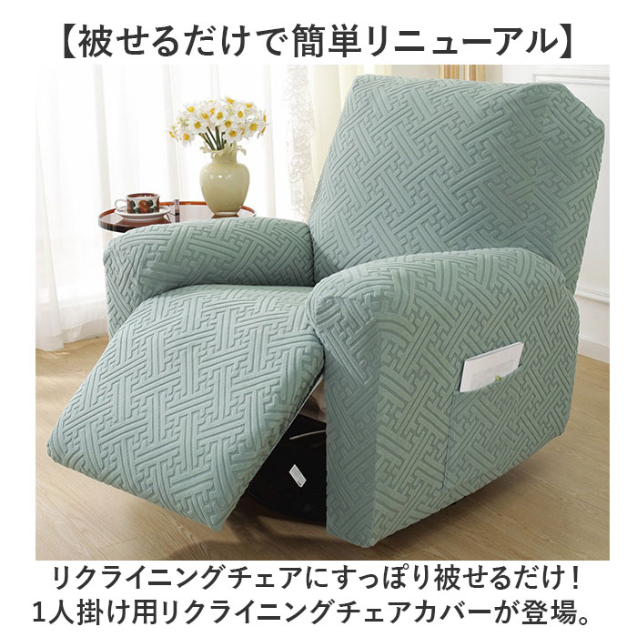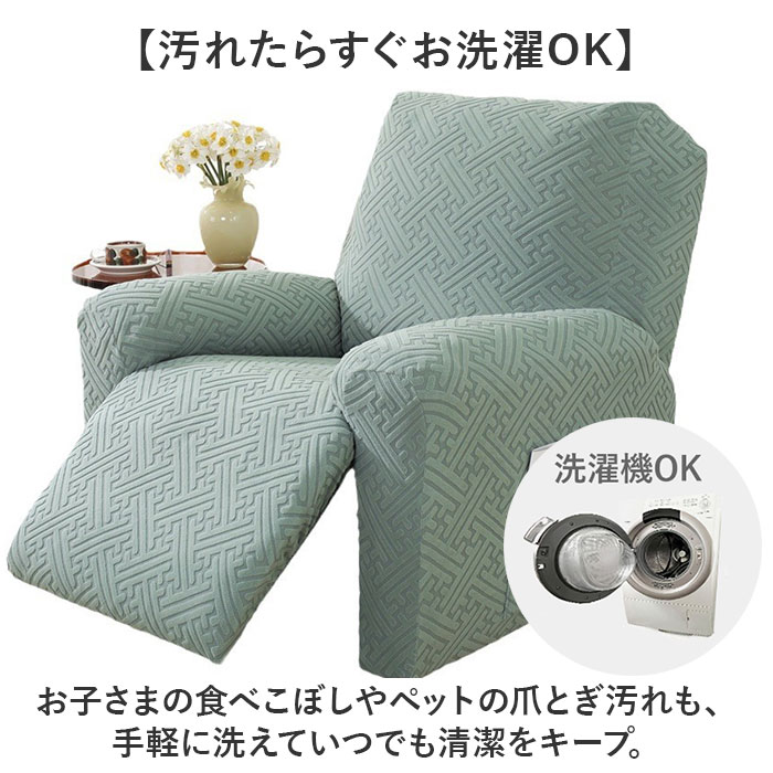 | 【被せるだけで簡単リニューアル】 ・リクライニングチェアにすっぽり被せるだけ!1人掛け用リクライニングチェアカバーが登場。 【4ピースでまるごとカバー】 ・背もたれ・座面・ひじ掛け2枚の計4枚構成で、各パーツにしっかり装着できるセット♪ 【便利なミニポケット】 ・リモコンなどをサッと収納できるミニポケット付きで、手元に置きたい小物もサッと取り出せる〇 【やわらかストレッチ素材】 ・通気性が良く、なめらかな肌触りで快適。タテヨコに伸びる生地がぴったり密着◎ 【汚れたらすぐお洗濯OK】 ・お子さまの食べこぼしやペットの爪とぎ汚れも、手軽に洗えていつでも清潔をキープ。 |