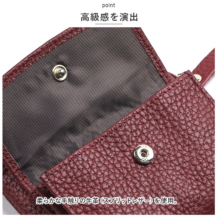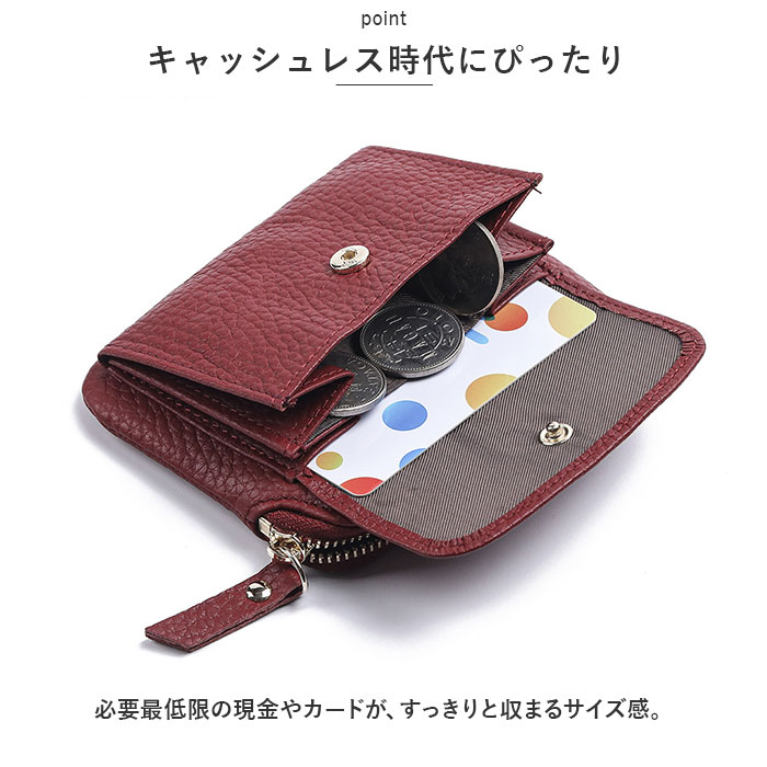 | ・シンプルで使いやすい!本革財布が新登場。 【高級感を演出】 ・柔らかな手触りの牛革(スプリットレザー)を使用。 【キャッシュレス時代にぴったり】 ・必要最低限の現金やカードが、すっきりと収まるサイズ感。 【小銭やカードをすぐに取り出せるポケット】 ・フロントのスナップボタン式ポケットは、仕分けしやすく取り出しやすい2ルーム仕様!ササマチ付きで大きく開くのもポイント。 【折り札や小物も】 ・マルチに使えるファスナーポケットを装備。ファスナー引き手付きで開閉がスムーズ。 【鍵の紛失を防止!】 ・ファスナーポケット内側にキーリングが付属。貴重品をまとめておけて便利◎ |