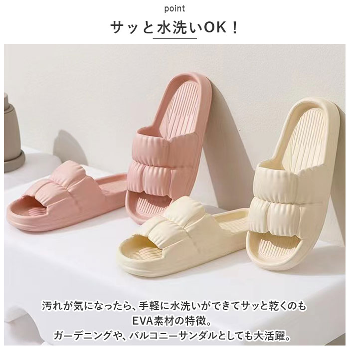 ・汚れが気になったら、手軽に水洗いができてサッと乾くのもEVA素材の特徴。ガーデニングや、バルコニーサンダルとしても大活躍。
