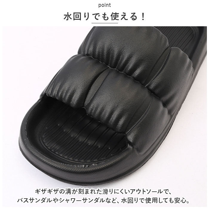 ・ギザギザの溝が刻まれた滑りにくいアウトソールで、バスサンダルやシャワーサンダルなど、水回りで使用しても安心。