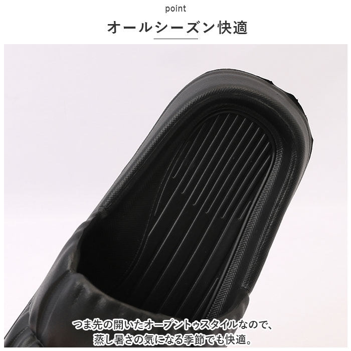 ・つま先の開いたオープントゥスタイルなので、蒸し暑さの気になる季節でも快適。