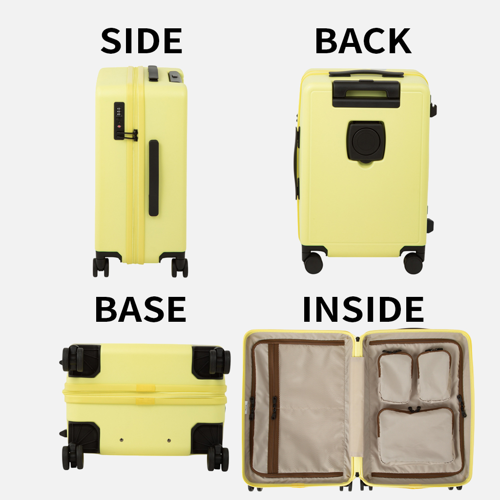 | 仕様 | 33L(2〜3日程度) 機内持ち込み対応 【 メイン ファスナーオープン仕様 】 前面:ファスナー収納×1:メッシュファスナーポケット(A5)×2 後面:ファスナー収納×1:ファスナーポケット(B6)×1、(A7)×2 【 上部 】 ハンドル×1 プルドライブハンドル 【 サイド 】 ハンドル×1 TSロック(3桁のダイヤル式) ※鍵は空港で検査する職員のみ与えられており、付属しておりません。 グライド×4 ※2つはフック機能付き 【 背面 】 ドリンクホルダー 【 キャスター 】 4輪双輪キャスター 【 付属品 】 各種取扱説明書 【 JANコード:01ブラック 】 4549531689194 |