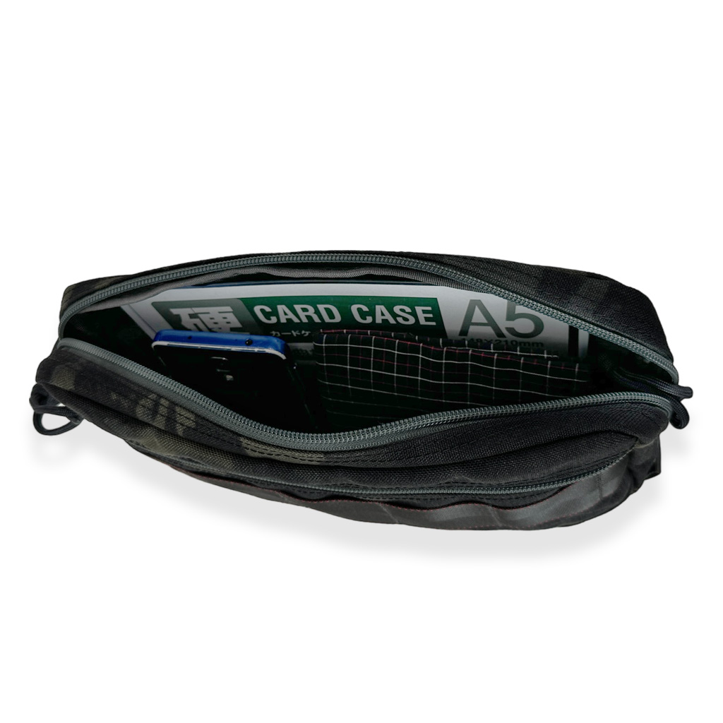 | 仕様 | 【 メインA5サイズ(ファスナー開閉) 】 メッシュポケット(A7)×2、ファスナーポケット(B6) 【 前面 】 ファスナーポケット(B6)[オープンポケット(B7)×2、バックル式着脱キーリング] 【 持ち手 】 側面×1、底面×1 【 JANコード :ネイビー 】 4550013270182 |