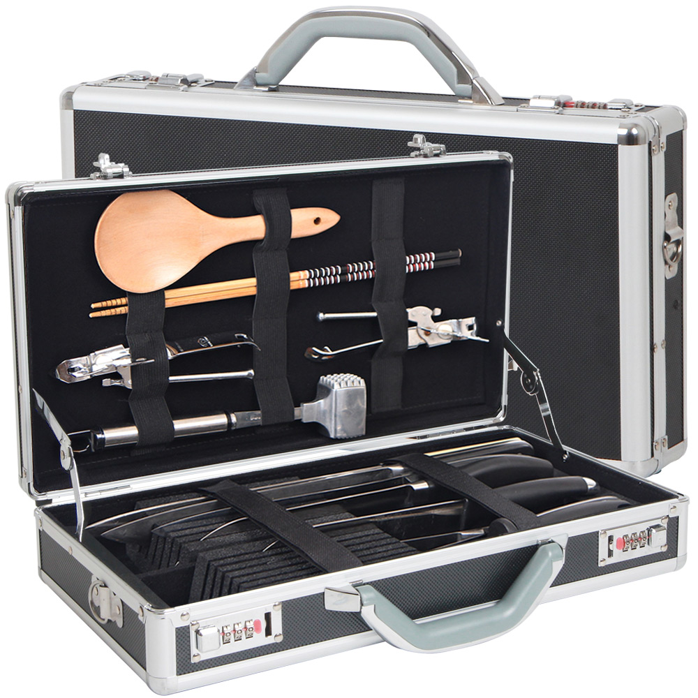 (訳あり) 新品 包丁ケース 持ち運び アタッシュケース ダイヤルロック 包丁収納 調理器具 出張料理人 和食 洋食 中華 ADD043-BLACK(ブラック小型)R