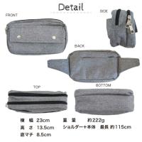 | 商品特徴 ・本体前面にかぶせ付きポケット ・2ルーム仕様 ・本体内部にオープンポケット付き ・本体背面にオープンポケット付き ・ウエストベルト長さ調節可能