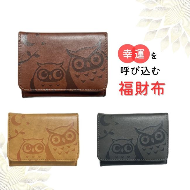 【クリックポストで送料無料】財布 二つ折り財布 札入れ ふくろう 福財布 レディース ギフト プレゼント 開運 金運 運気 和 型押し 縁起 幸運 春財布 締め財布