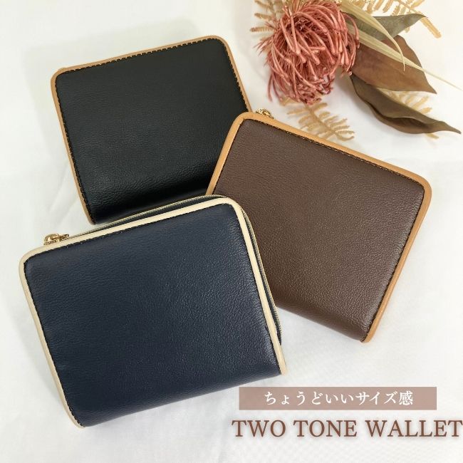 【クリックポストで送料無料】二つ折り財布 レディース ユニセックス 男女兼用 札入れ ツートン バイカラー シンプル 日常使い カジュアル 財布 使いやすい カード多い コンパクト ファスナー お手頃 プチプラ L-784