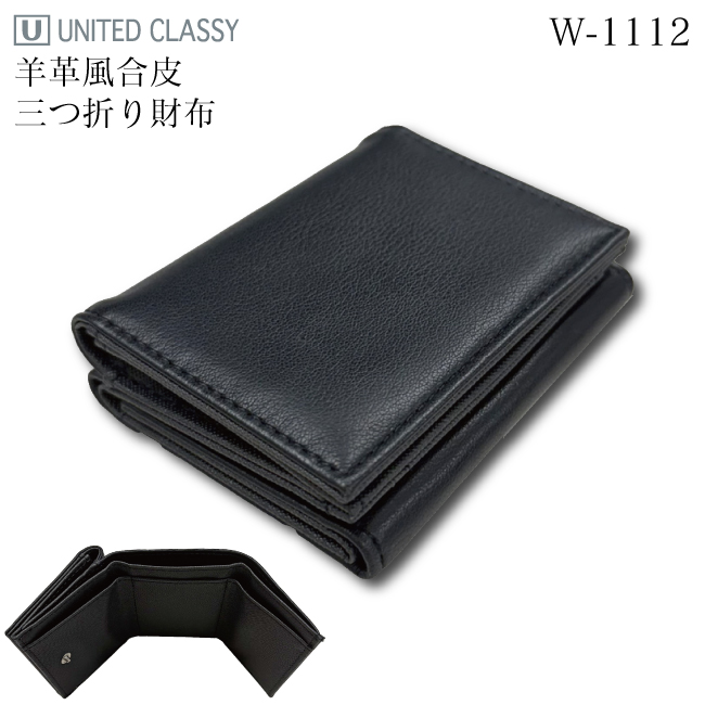 【クリックポストで送料無料】財布 三つ折り ミニ ウォレット メンズ 紳士 男性 コンパクト キャッシュレス シンプル 羊革風 合皮 プレゼント ギフト W-1112