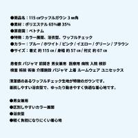 白を基調とし、カラーラインが入っているシンプルなガウンです。ワッフル地なので肌に接地する面が少なく、さらっとした着心地で蒸れにくいです。