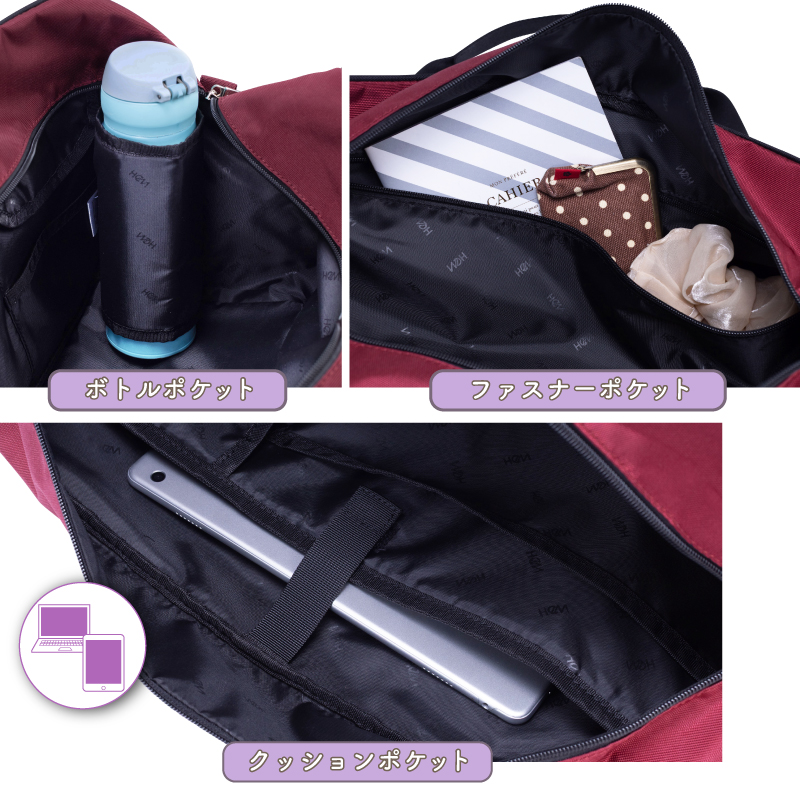 【メインルーム内】ファスナーポケット×1、クッション材入りポケット×1、オープンポケット×2、ボトルポケット×1、フラップポケット×1、底板×1(取外し不可)