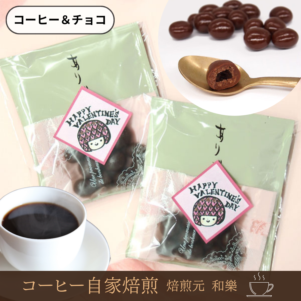 ![]() | 和樂オリジナル珈琲豆チョコは、生豆を当店でコーヒービーンズチョコ用に調整して焙煎したものを使用しています。 コーヒー豆のカリッとした食感と、味わい深い香りと苦味がひきたつように、チョコの甘みと量のバランスにもこだわった一品です。兵庫県にある委託工場にて、口の中でトロっととろける上質なチョコレートをコーティングしています。 バレンタイン用にピンクの袋でお届けいたします。 |
