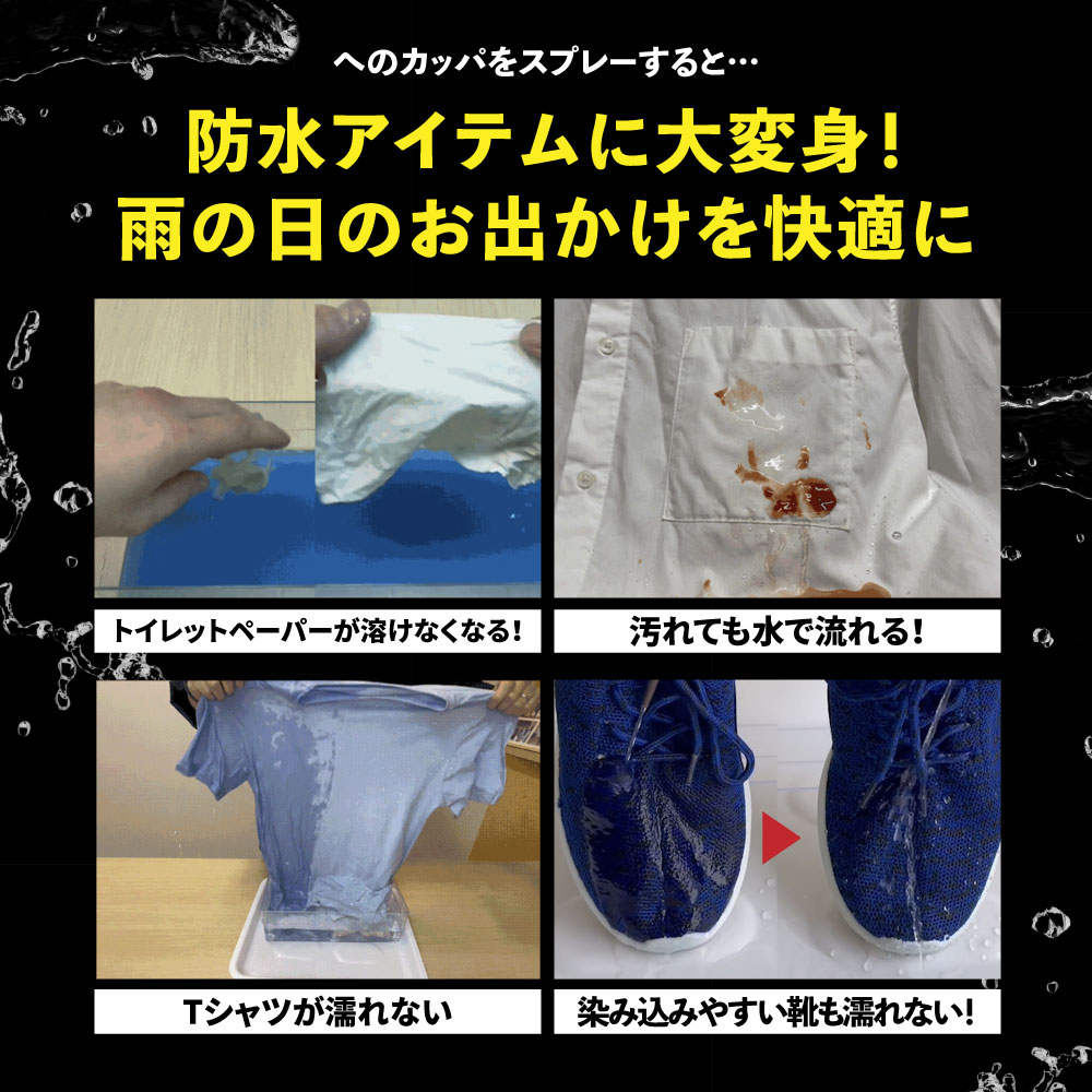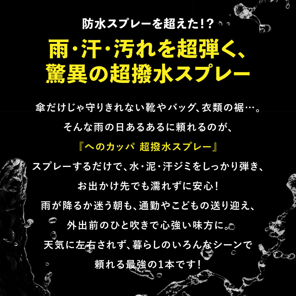 そんなイヤな思いを解消し、雨の日でも快適に過ごせる超撥水スプレーを