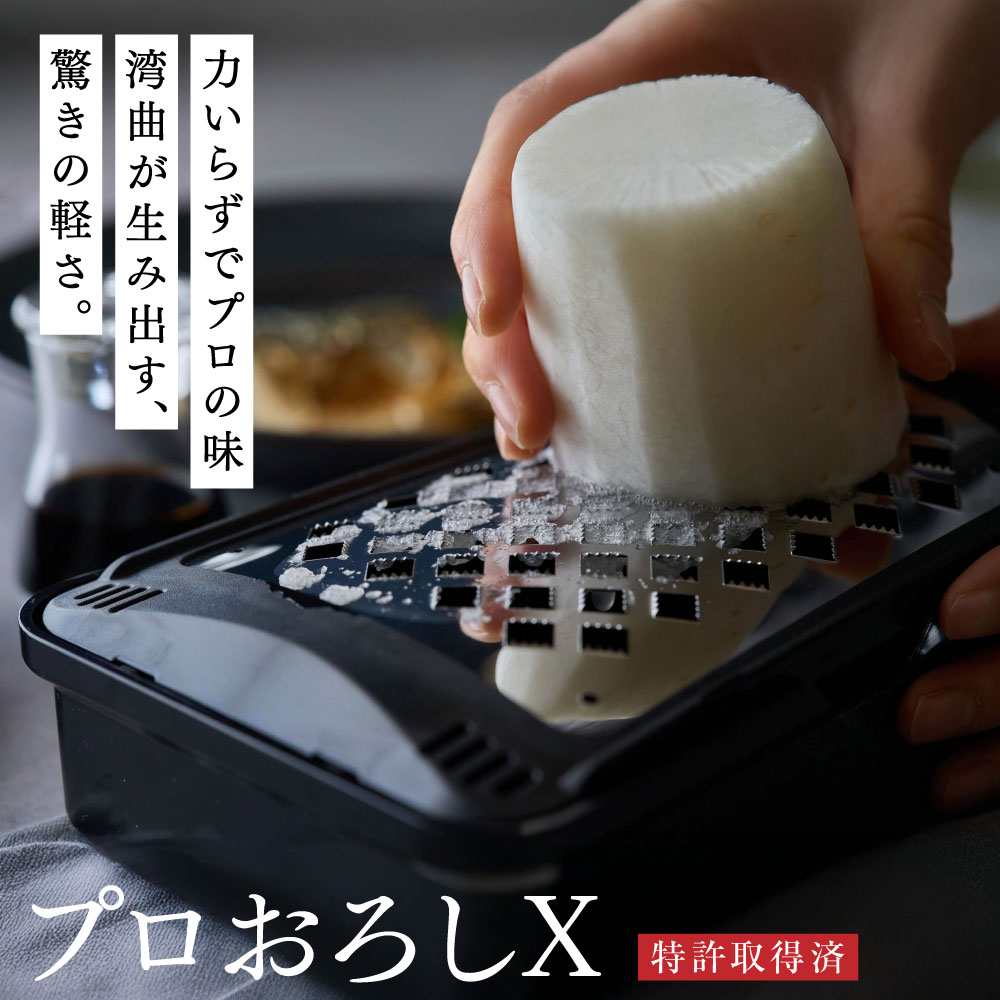 切れ味抜群!腕が疲れず、食材がラクにおろせるように設計された「プロおろしX(エックス)」。