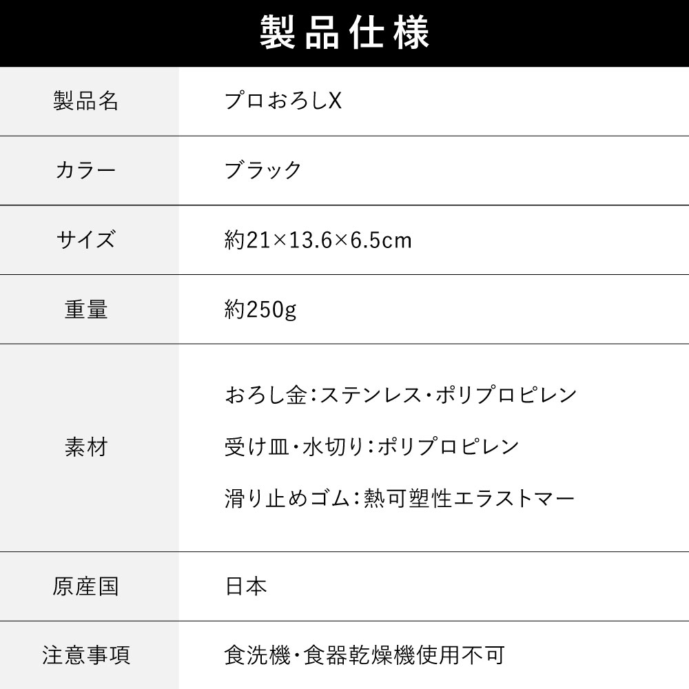 プロおろしX おろし器 日本製 おろし金 すりおろし器 和田商店 特許取得済 滑り止めゴム付き 水切り付き ステンレス製
