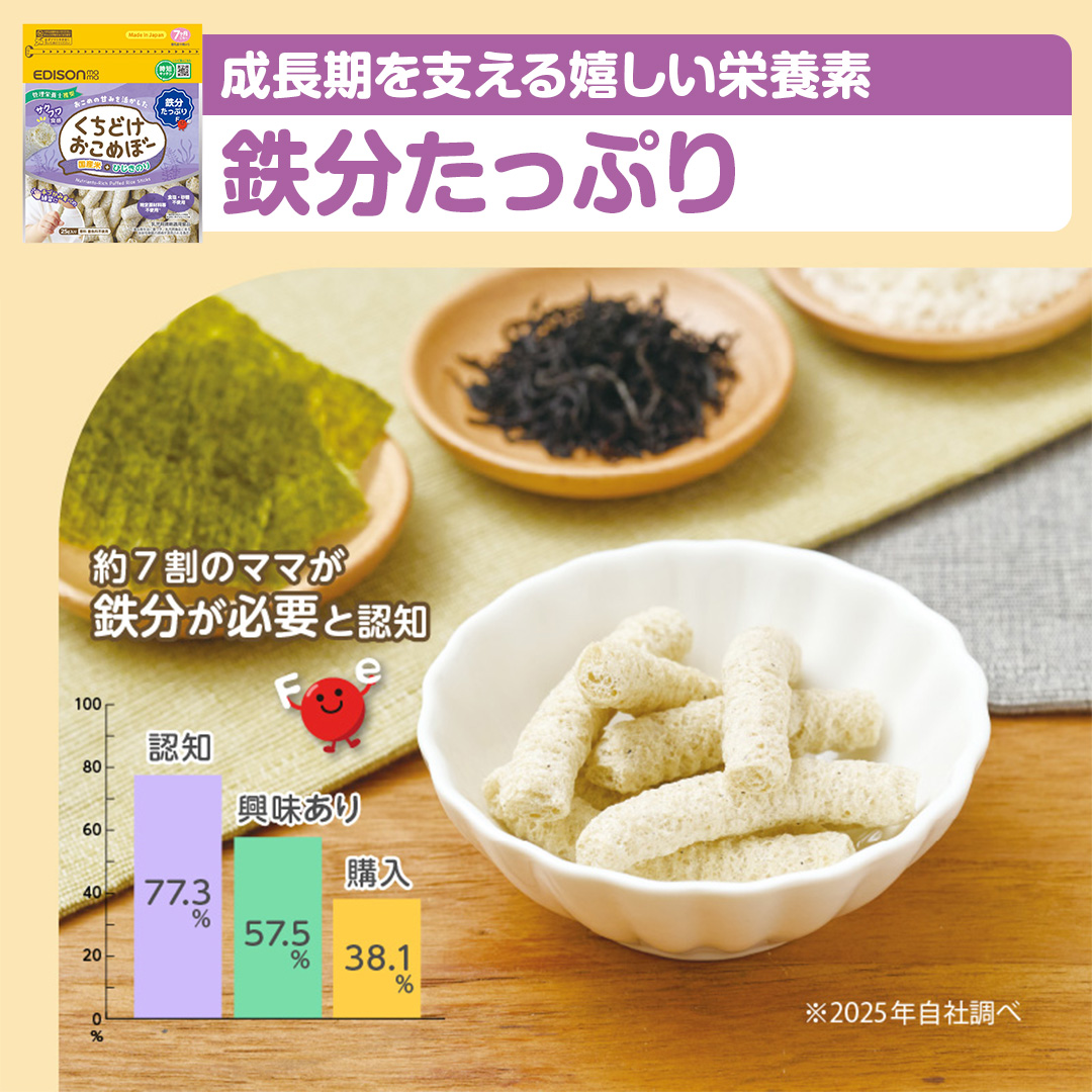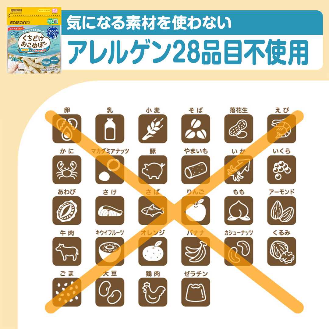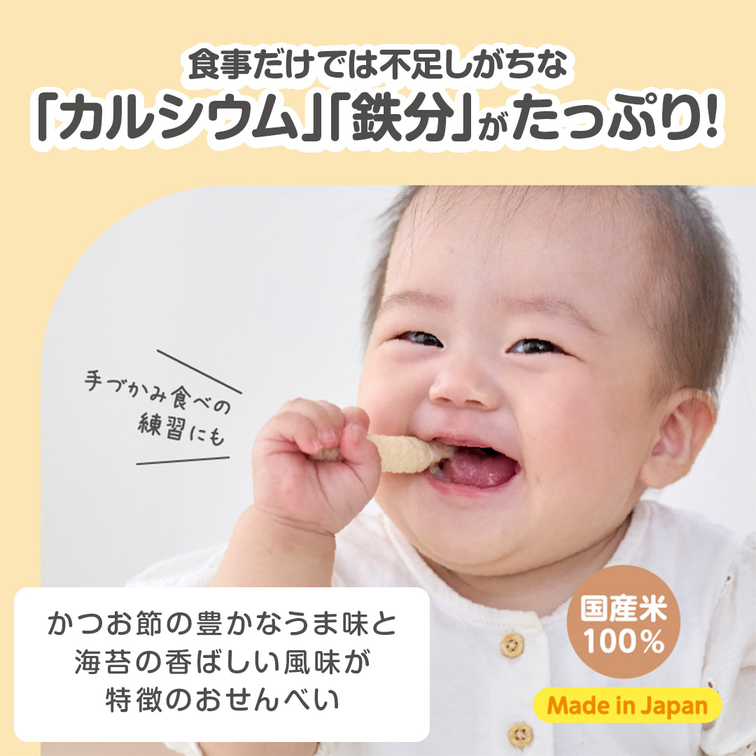 砂糖不使用でしらす・おかかの風味を活かしたおせんべいで、「離乳食の食べムラがある」「子供が偏食であまり食べない」「お菓子の食べ過ぎが心配」な方も安心して与えることができます。