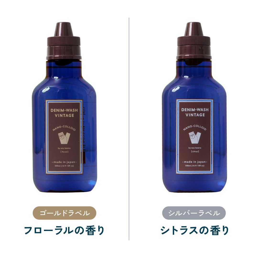 デニムウォッシュ ヴィンテージは、穿き込んだジーンズなどの皮脂汚れや不純物のみを取り除き、濃いインディゴを保ってくれる効果のあるデニム用洗剤です。