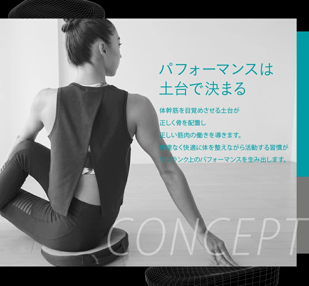 ピント スポーツは常に正しい軸に戻る為の仕組みを備えているので自由に、軽やかに、安心して動くことができます。