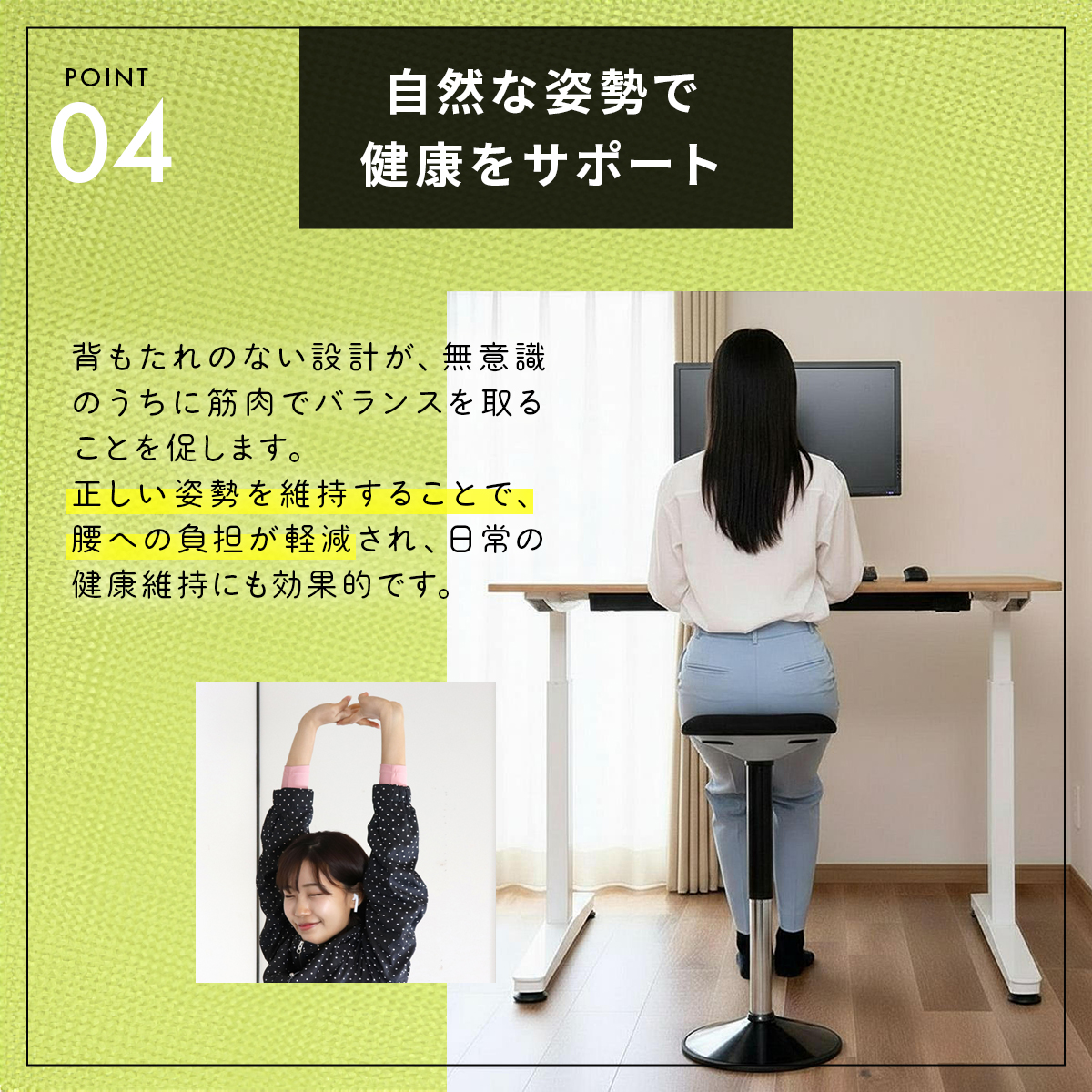 よく検索されるキーワード:ハイチェア スツール カウンタースツール バランスチェア いす ドレッサーチェア 1脚 高さ調整 昇降 人間工学 腰痛対策 姿勢矯正 ポイント利用