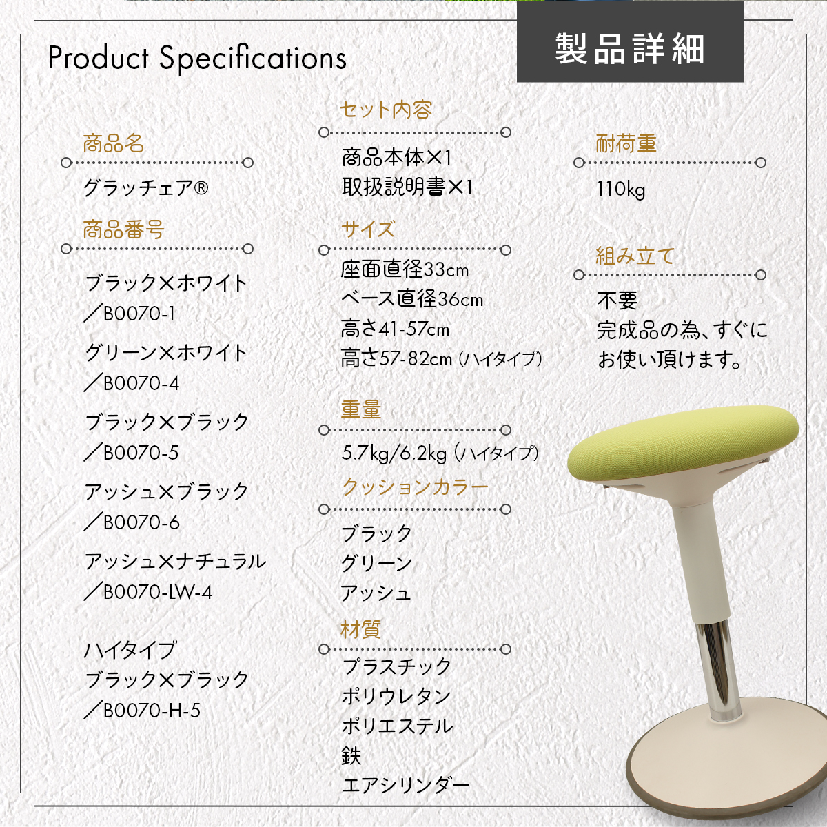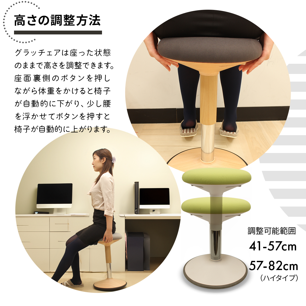 バランスチェア イス 腰痛 ちょい座り 家事 疲れる 高さ調節 姿勢矯正 体幹 グラッチェア ハイタイプ カウンター スツール 疲れない 姿勢が良くなる 姿勢矯正