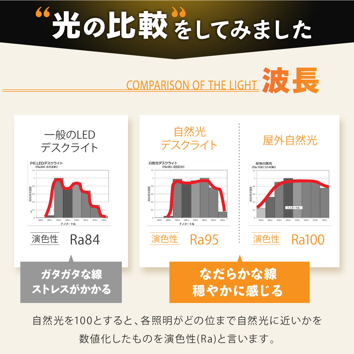 自然光に一番近い光の質、目に優しいLEDデスクライト