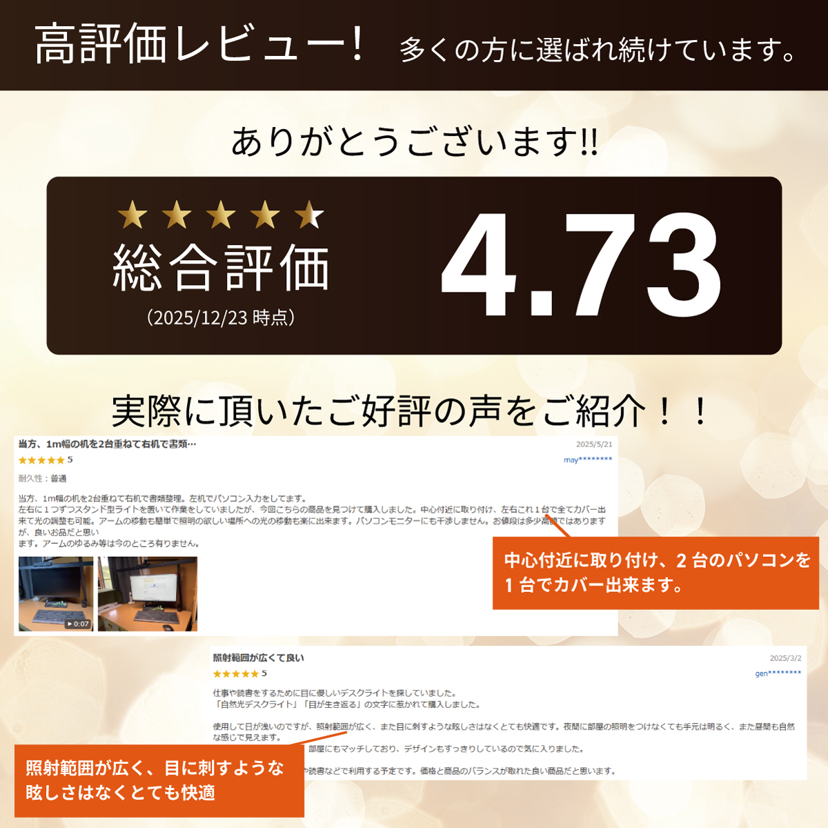 自然光に一番近い光の質、目に優しいLEDデスクライト