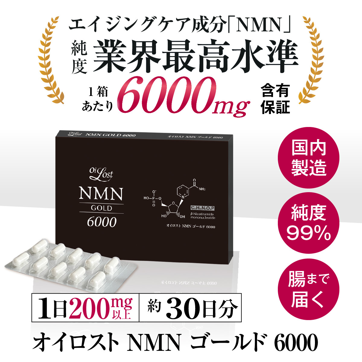 NMN 含有量保証(1粒に200mg以上保証)純度99%以上 オイロスト NMN ゴールド 6000 約1ヶ月分(1箱30カプセル入り)