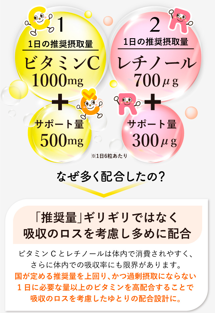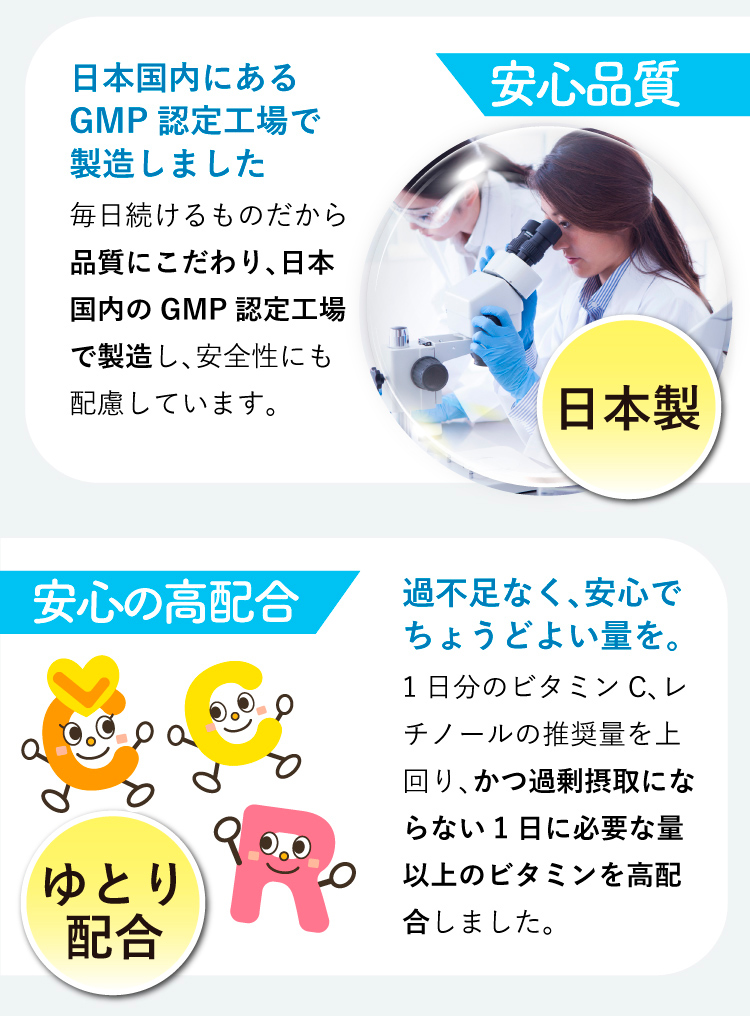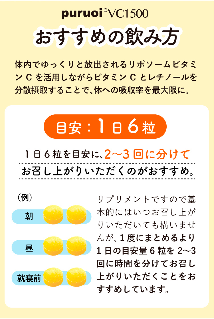 | お召し上がり方 | 栄養補助食品として1日6粒を目安に、お水又はぬるま湯でお召し上がりください。 |