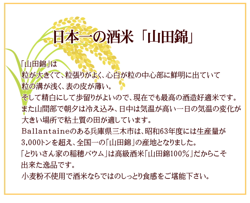 【とりいさん家の稲穂バウム】〜高級酒米「山田錦」使用〜