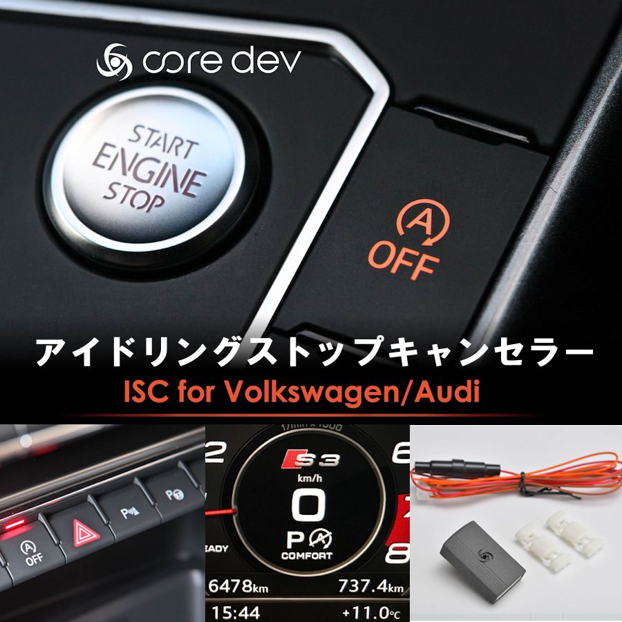 core dev ISC for Volkswagen/AUDI は、エンジン始動とともにアイドリングストップ機能をキャンセルする製品です。