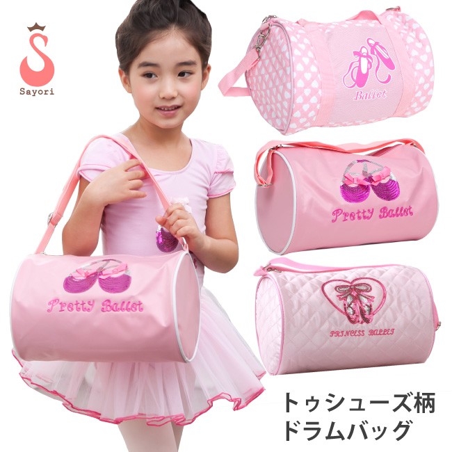 お子様に大人気のピンク色★トゥシューズ柄のバリエーション豊富なドラムバッグです。