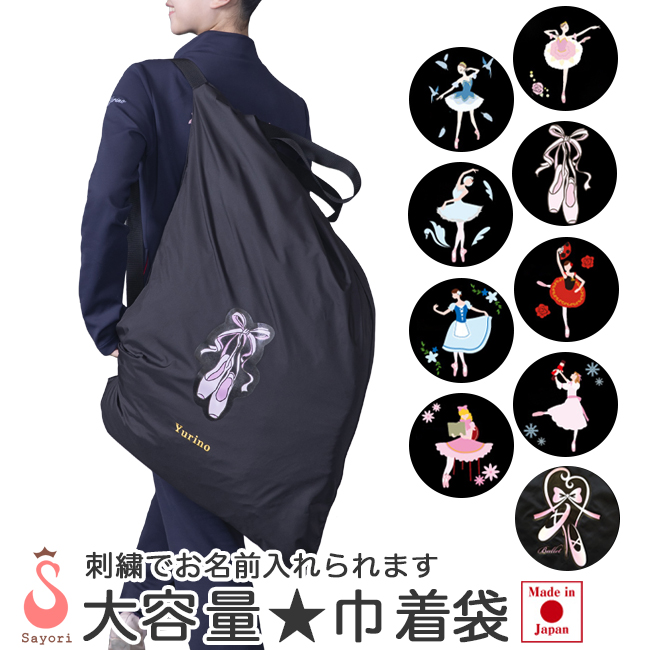 バレエ用品 バッグ バレエ柄プリント 巾着型衣装入れ 名入れ刺繍 レッスンバッグ ショルダーバッグ 手提げバッグ 巾着袋 巾着バッグ 名入れ scb003