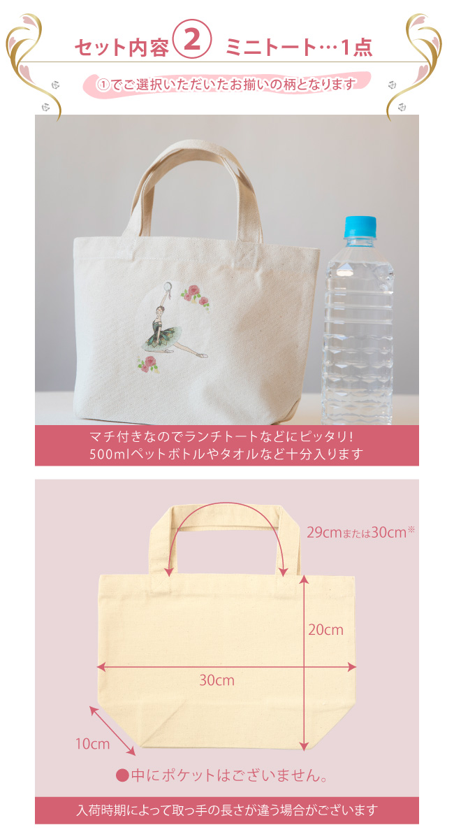 タオルハンカチ+ミニトートのバレエ・小物 2点セット
