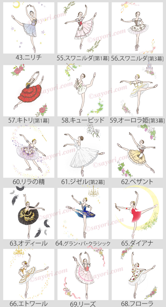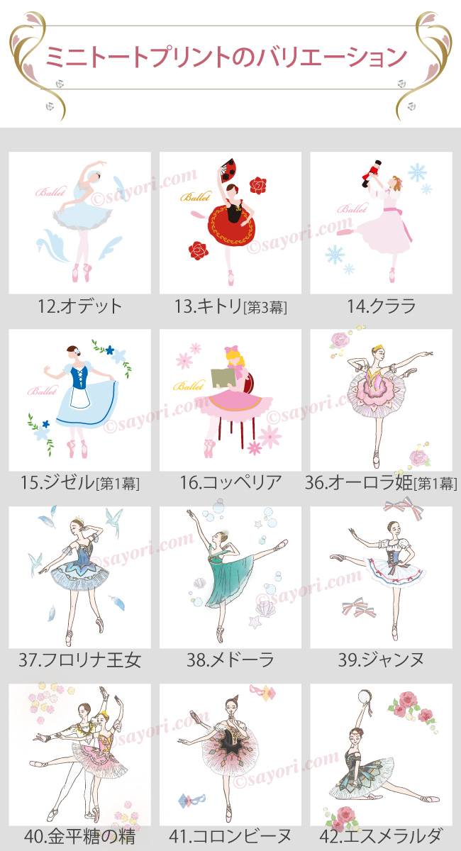 バレエ演目の主人公や登場人物をモチーフにしたデザイン
